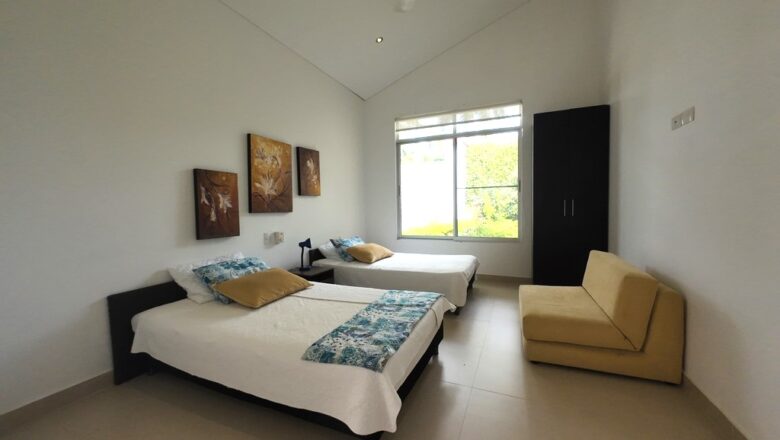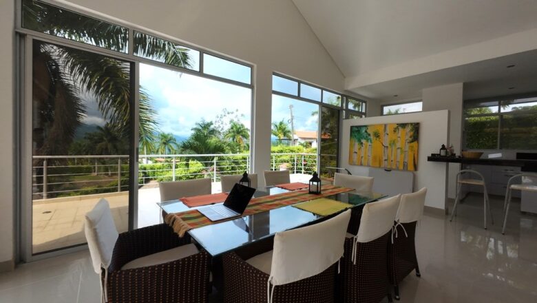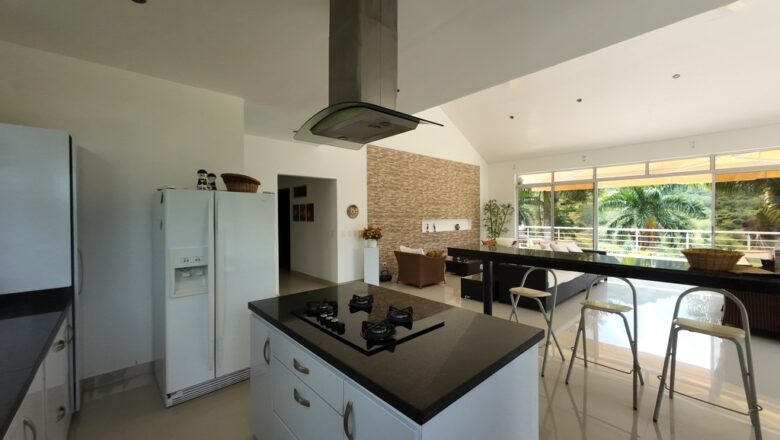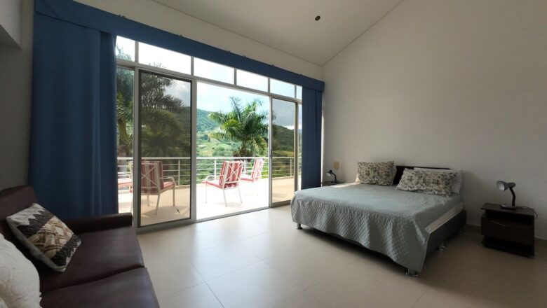 ¡GRAN OPORTUNIDAD. BAJÓ DE PRECIO! HERMOSÍSIMA casa totalmente independiente con espectacular vista panorámica, amplia sala comedor, cocina integral con isla tipo americano, cuatro habitaciones, tres con baños privados, baño social, estar de televisión o estudio, zona de lavandería y terraza alrededor de toda la casa, Toda la casa cuenta con ventiladores de techo y excelente iluminación. Adicionalmente cuenta con zona de huéspedes la cual consta de: sala – comedor, amplia habitación y baño, y zona independiente con baño privado para huéspedes, Ubicada en un magnífico conjunto cerrado a 5 minutos de Anapoima con piscina, cancha de tenis, fútbol, piscina, lago, senderos, zonas sociales.