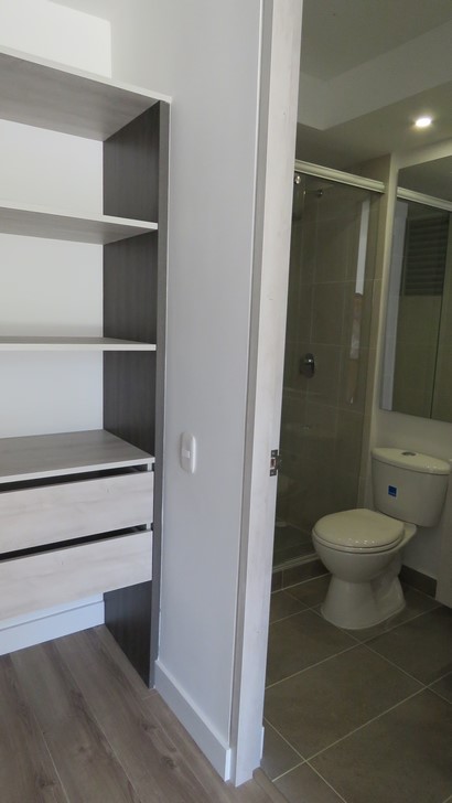 Excelente apartamento exterior de 59 M2 con maravillosa luz natural. Sala – comedor con balcón, cocina integral tipo americano, zona de lavandería independiente, baño social, habitación con baño privado, zona de estudio y parqueadero independiente. Ubicado en un reconocido conjunto residencial con piscina, zona húmeda, gimnasio, bar, parque infantil, parqueaderos de visitantes y senderos peatonales. Cerca a la Carrera 1, Calle 7, Gimnasio Hard Body de Chia, Centro Deportivo el Campincito, tiendas D1, entre otros.